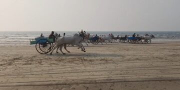 ग्रामीण परंपरेचा जल्लोष; शिवजयंती निमित्त केळशी समुद्रकिनारी १७ बैलगाड्यांची थरारक शर्यत