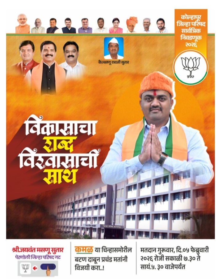 ग्रामीण भागाचा विकास हाच देशाच्या प्रगतीचा पाया आहे, ही संकल्पना उराशी बाळगून पेरणोली जिल्हा परिषद गणातून जयवंत मसणू सुतार यांनी निवडणुकीच्या रिंगणात उडी घेतली आहे. “जिल्हा परिषद सदस्याची भूमिका केवळ प्रतिनिधी म्हणून नाही, तर गावाच्या प्रगतीचा कणा म्हणून असते,” असे मत मांडत त्यांनी आपल्या विकासकामांचा कृती आराखडा मतदारांसमोर ठेवला आहे.