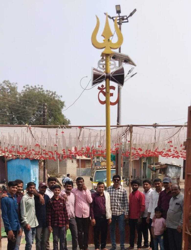 त्रिशूल पूजन करून भगवान शंकरांची आरती करण्यात आली. या पवित्र सोहळ्यासाठी गावातील ग्रामस्थ मोठ्या प्रमाणात उपस्थित होते. संपूर्ण परिसरात “हर हर महादेव” च्या घोषणांनी भक्तिमय वातावरण निर्माण झाले होते.