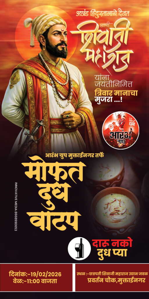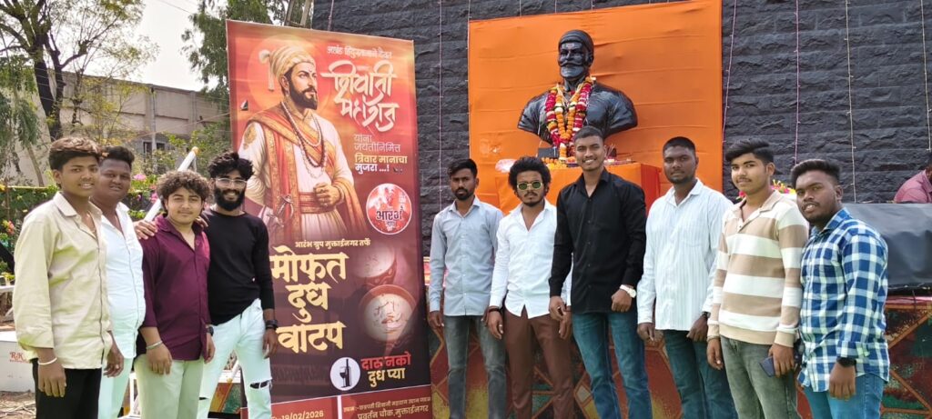 शहरातील सामाजिक कार्यात अग्रेसर असलेल्या आरंभ ग्रुपतर्फे अखंड महाराष्ट्राचे आराध्य दैवत छत्रपती शिवाजी महाराज यांच्या जन्मोत्सवानिमित्त निमित्त एक स्तुत्य उपक्रम राबवण्यात आला. सण-उत्सवाच्या काळात मद्यपान किंवा अमली पदार्थांच्या आहारी जाणाऱ्या तरुणाईला योग्य दिशा मिळावी आणि आरोग्याप्रति जागरूकता निर्माण व्हावी, या उद्देशाने शहरात भव्य ‘मोफत दूध वाटप’ कार्यक्रम संपन्न झाला.