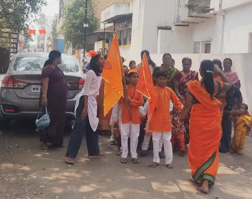 हुडको वसाहतीतील दिपाली कुर्हे मॅडम यांनी आपल्या क्लासमधील लहान मुलांसमवेत महाराजांची पायी यात्रा वसाहतीतून काढली.