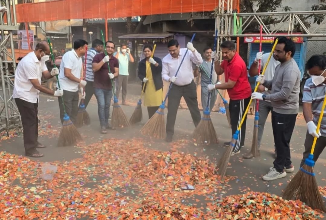 संपूर्ण महाराष्ट्रासह अवघ्या जगाचे दैवत असलेल्या छत्रपती शिवाजी महाराज यांच्या जयंतीचाउत्साह सर्वत्र ओसंडून वाहत असताना, सांगली जिल्हा प्रशासनाने मात्र या उत्साहाला ‘सामाजिक बांधिलकीची’ जोड देत एक स्तुत्य उपक्रम राबविला. केवळ उत्सव साजरा करून न थांबता, उत्सवानंतरचा परिसर चकाचक ठेवण्याचा वस्तुपाठ जिल्हाधिकारी अशोक काकडे यांच्या संकल्पनेतून आज सांगलीकरांना पाहायला मिळाला. छत्रपती शिवाजी महाराजांनी स्वराज्यात शिस्त आणि स्वच्छतेला महत्त्व दिले होते. तोच वारसा पुढे नेण्यासाठी आम्ही हा छोटासा प्रयत्न केला आहे. उत्सवाचे स्वरूप ‘कचरामुक्त’ असावे, हाच आमचा उद्देश असल्याचे जिल्हाधिकारी अशोक काकडे यावेळी म्हणाले. सांगलीतील मारुती चौक येथील शिवरायांच्या अश्वारूढ पुतळा परिसरात जयंतीनिमित्त मोठी गर्दी आणि विविध कार्यक्रम झाले होते. अनेकदा अशा मोठ्या कार्यक्रमानंतर परिसरात अस्वच्छता पसरते, ज्याचा त्रास सर्वसामान्य नागरिकांना होतो. ही बाब लक्षात घेऊन ‘सांगली पॅटर्न’ अंतर्गत जिल्हा प्रशासनाने तातडीने स्वच्छता अभियान राबवण्याचा निर्णय घेतला. या मोहिमेचे सर्वात मोठे वैशिष्ट्य म्हणजे खुद्द जिल्हाधिकारी अशोक काकडे यांनी स्वतः हातात झाडू घेऊन परिसर स्वच्छ केला. “स्वच्छता ही आपली सामाजिक बांधिलकी आहे,” असा संदेश त्यांनी आपल्या कृतीतून दिला. या स्वच्छता मोहिमेत निवासी उपजिल्हाधिकारी डॉ. स्नेहल कनिचे, अतिरिक्त आयुक्त राहूल रोकडे, उपजिल्हाधिकारी सतीश कदम व विजया यादव, मिरज उपविभागीय अधिकारी उत्तम दिघे, जिल्हा सूचना विज्ञान अधिकारी यासीन सय्यद, जिल्हाधिकारी कार्यालय व महानगरपालिकेचे अधिकारी व कर्मचारी तसेच सामाजिक संस्थांचे डॉ. संजय पाटील, प्रशांत भोसले यांच्यासह अन्य सामाजिक कार्यकर्त्यांनी त्यांच्या सहकाऱ्यांसह या मोहिमेत श्रमदान केले.