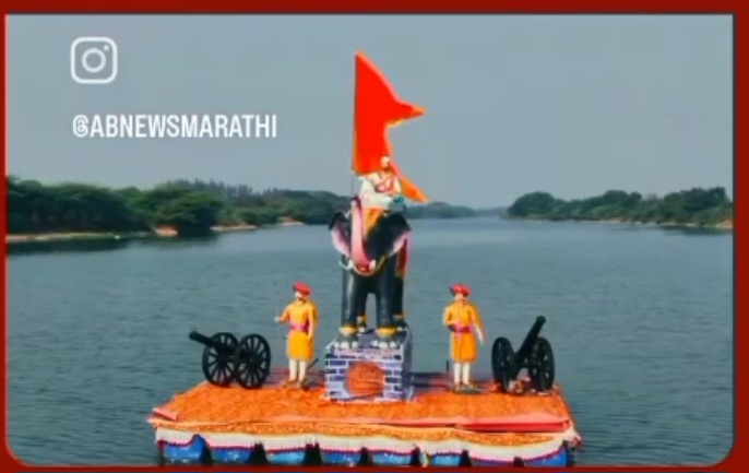 नदीच्या वाहत्या पात्रात शिवरायांची ही हत्तीवर स्वार असलेली ही प्रतिमा अत्यंत जिवंत वाटते.