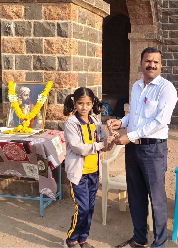 यावेळी छत्रपती शिवाजी महाराजांच्या प्रतिमेची पूजन मुख्याध्यापक मा. शिवाजीराव शिंदे यांचे शुभहस्ते करण्यात आले.