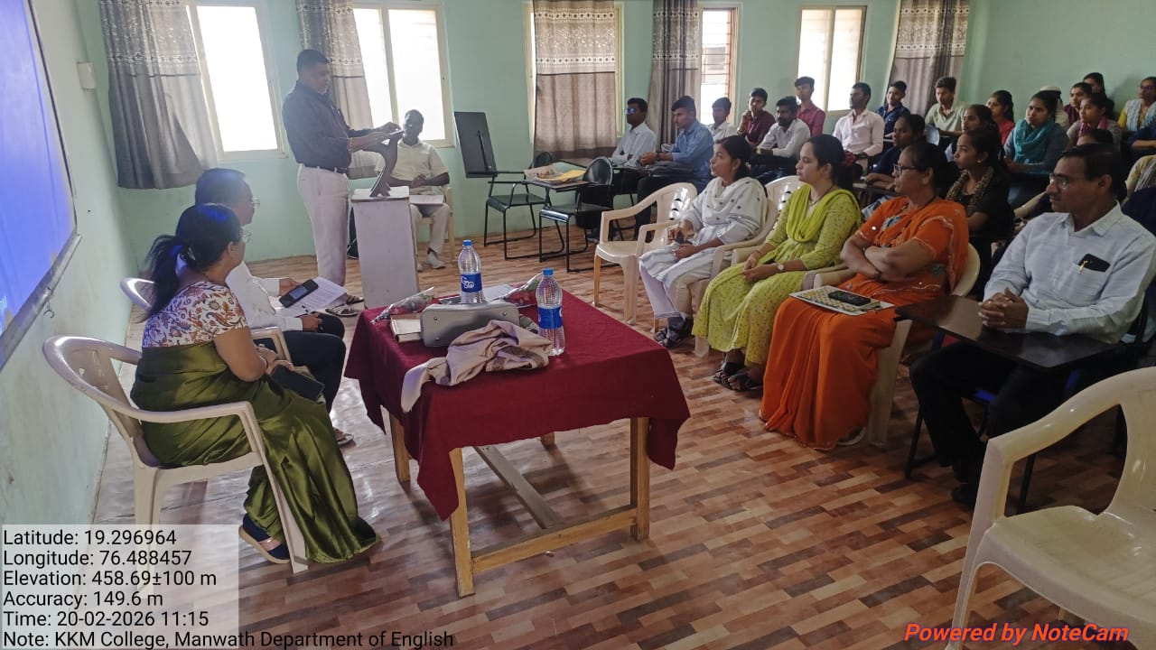 23 फेब्रुवारी 2026 रोजी के. के. एम. महाविद्यालयातील इंग्रजी विभागाच्या वतीने “व्यावसायिक विकासामध्ये इंग्रजी भाषेची भूमिका” या विषयावर एकदिवसीय प्रादेशिक कार्यशाळेचे यशस्वी आयोजन करण्यात आले. या कार्यशाळेचा उद्देश विद्यार्थ्यांच्या करिअर प्रगतीसाठी आणि व्यावसायिक विकासासाठी इंग्रजी भाषेचे महत्त्व अधोरेखित करणे हा होता. यावेळी विविध महाविद्यालयांतील प्राध्यापक आणि विद्यार्थी मोठ्या संख्येने उपस्थित होते.