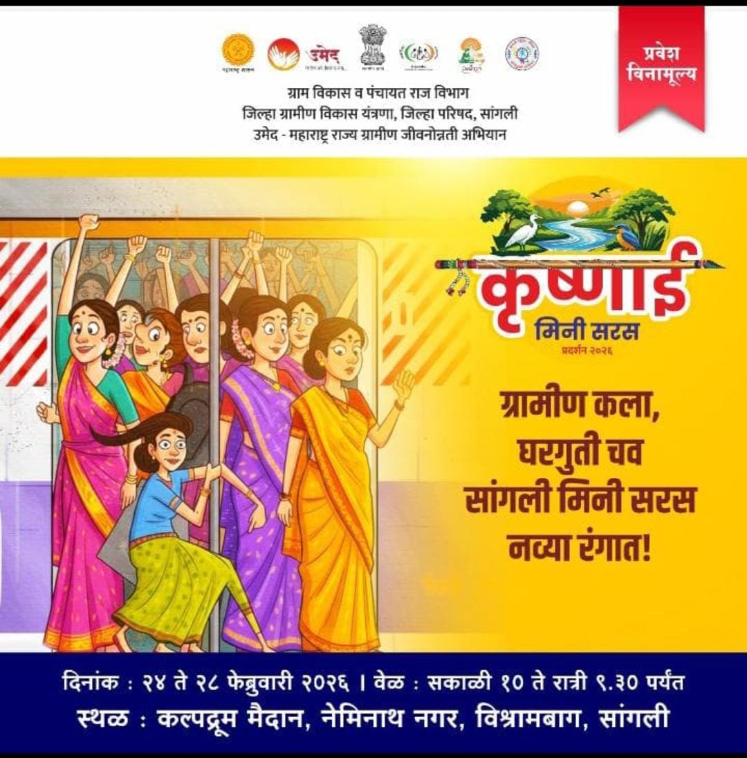 ग्रामीण भागातील बचत गटांनी उत्पादित केलेल्या वस्तूंना व्यापक बाजारपेठ उपलब्ध करून देण्याच्या उद्देशाने महाराष्ट्र राज्य ग्रामीण जीवनोन्नती अभियान (उमेद) यांच्या वतीने जिल्हास्तरीय ‘कृष्णाई मिनी सरस’ बचत गट उत्पादन विक्री व प्रदर्शनाचे आयोजन करण्यात आले आहे. हे प्रदर्शन दि. २४ ते २८ फेब्रुवारी २०२६ या कालावधीत कल्पद्रुम मैदान, नेमिनाथनगर (सांगली) येथे होणार असल्याची माहिती जिल्हा ग्रामीण विकास यंत्रणेच्या प्रकल्प संचालिका नंदिनी घाणेकर यांनी दिली.