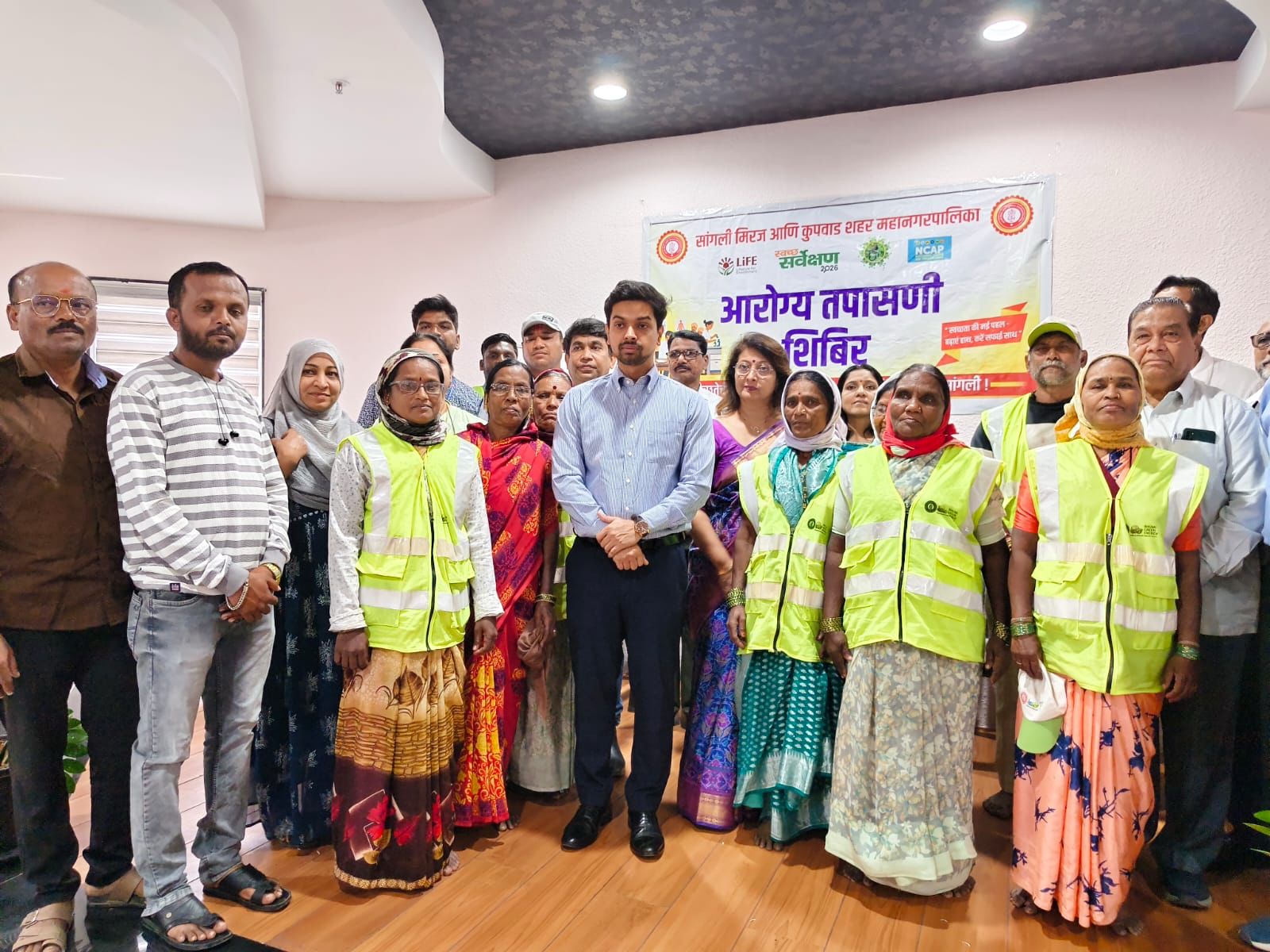 आरोग्य व स्वच्छता विभागातील कर्मचारी हे शहर व्यवस्थेचा कणा आहेत. ते समाजाचा महत्त्वाचा आधार असून, त्यांच्या आरोग्याची काळजी घेणे ही प्रशासनाची जबाबदारी आहे. हे कर्मचारी निरोगी राहिल्यास शहराच्या विकासाला अधिक गती मिळेल.”याप्रसंगी महापौर श्री. धीरज सूर्यवंशी, उपमहापौर श्री. गजानन मगदूम, सभागृह नेते श्री. संदीप आवटी तसेच नवनिर्वाचित नगरसेवकांचा सत्कार करण्यात आला. या कार्यक्रमास महानगरपालिकेचे वरिष्ठ अधिकारी, कर्मचारी आणि हॉस्पिटलचा वैद्यकीय कर्मचारी वर्ग मोठ्या संख्येने उपस्थित होता.