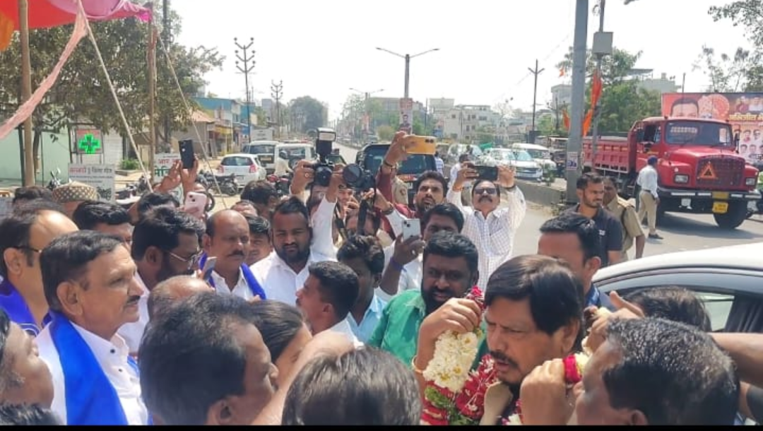 आज दि 25 फेब्रुवारी 2026 रोजी परभणी शहरात पाथरी रोड विसावा कॉर्नर येथे त्यांचे जंगी स्वागत करण्यात आले ना.मा.रामदासजी आठवले यांचे स्वागत करण्यात आले रिपब्लिकन पार्टी ऑफ इंडिया (आ.)च्या वतीने परभणी शहरात केंद्रीय सामाजिक न्याय राज्यमंत्री मा. ना. रामदासजी आठवले यांचे जाहीर स्वागत करण्यात आले. शहरातील आयोजित कार्यक्रमस्थळी पक्षाच्या पदाधिकारी व कार्यकर्त्यांच्या उपस्थितीत त्यांचे उत्साहात स्वागत करण्यात आले.