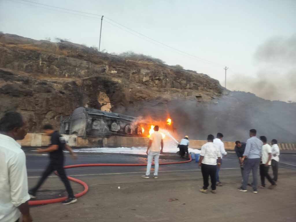 मिळालेल्या माहितीनुसार, डिझेलने भरलेला हा टँकर अक्कलपाडा धरण परिसरातील रस्त्यावरून जात असताना अचानक पलटी झाला. टँकरमध्ये ज्वालाग्राही पदार्थ असल्याने क्षणात ठिणगी पडली आणि आगीचा भडका उडाला. आगीच्या ज्वाळा इतक्या उंच होत्या की परिसरात भीतीचे वातावरण पसरले होते.