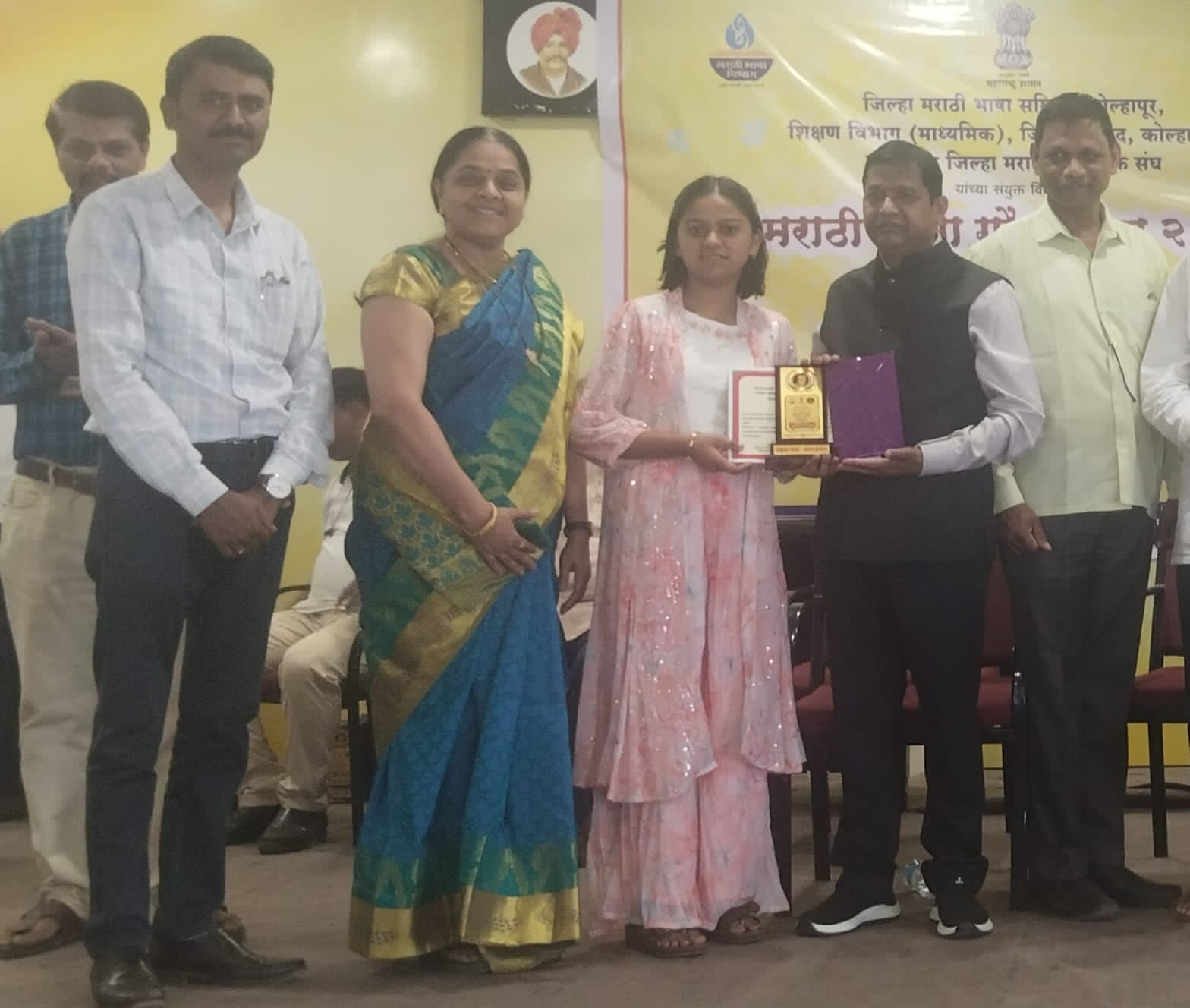 तालुकास्तरावरील स्पर्धेतील विजेत्या विद्यार्थ्यांचा कोल्हापूर येथे मा. जिल्हाधिकारी अमोल एडगे. राजाराम महाविद्यालयाचे मराठी व इंग्रजी विभाग प्रमुख डॉ. श्री. रघुनाथ कडाकणे, कोल्हापूर जिल्हा मुख्याध्यापक संघाचे अध्यक्ष श्री राहुल पवार, कोल्हापूर जिल्हा मराठी अध्यापक संघाचे अध्यक्ष श्री राजेंद्र पाटील यांचे उपस्थितीत एका विशेष कार्यक्रमांमध्ये सन्मानचिन्ह प्रमाणपत्र व पुस्तक भेट देऊन सत्कार करण्यात आला.