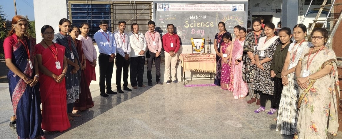 अंदरसूल येथील मातोश्री शांताबाई गोविंदराव सोनवणे इंग्लिश मिडियम स्कूलमध्ये २८ फेब्रुवारी रोजी ‘राष्ट्रीय विज्ञान दिन’ मोठ्या उत्साहात आणि चैतन्यमय वातावरणात साजरा करण्यात आला. थोर भारतीय शास्त्रज्ञ डॉ.सी.व्ही. रमण यांच्या कार्याचे स्मरण करत विद्यार्थ्यांमध्ये वैज्ञानिक दृष्टिकोन रुजावा, या उद्देशाने या कार्यक्रमाचे आयोजन करण्यात आले होते.