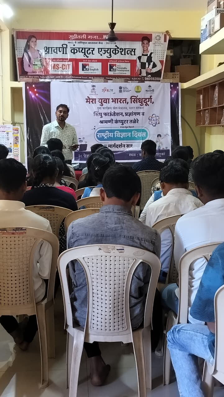 राष्ट्रीय विज्ञान दिनाच्या निमित्ताने माय भारत सिंधुदुर्ग यांच्या पुढाकारातून कणकवली तालुक्यात विज्ञान व आधुनिक तंत्रज्ञान विषयक मार्गदर्शन सत्रांचे आयोजन करण्यात आले. या उपक्रमाची अंमलबजावणी सिंधू फाउंडेशन, प्रज्ञांगण आणि श्रावणी कंप्युटर तळेरे यांच्या संयुक्त विद्यमाने करण्यात आली. या सत्रांना एकूण ९८ विद्यार्थ्यांची उपस्थिती लाभली.