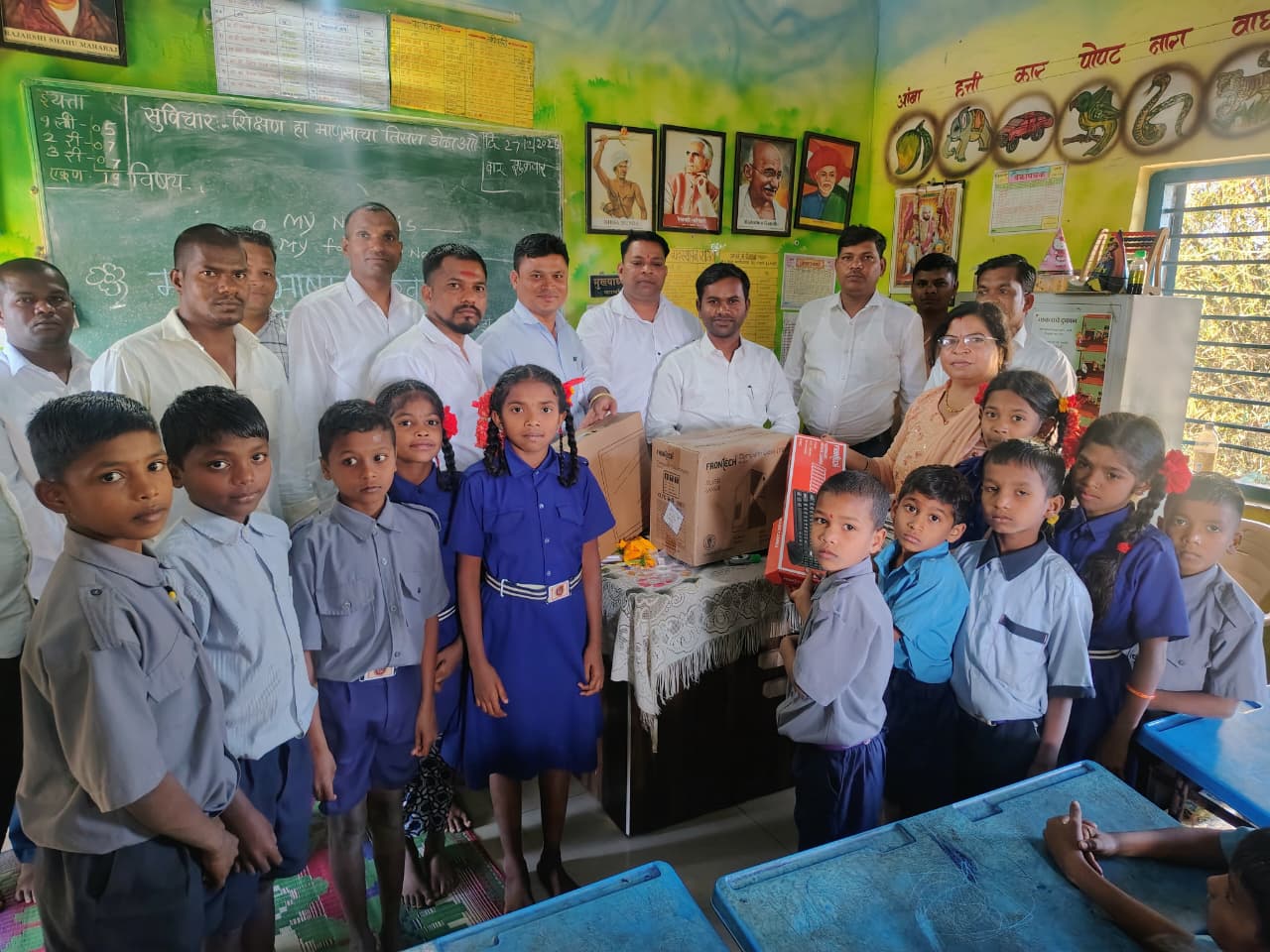 दि. २७ ‘मराठी भाषा गौरव दिना’चे औचित्य साधून सुनील भुसारा यांच्या संकल्पनेतून आणि राष्ट्रवादी काँग्रेस पक्ष (शरदचंद्र पवार), जव्हार तालुका यांच्या वतीने आपटाळे ग्रामपंचायत हद्दीतील प्रत्येकी तीन जिल्हा परिषद शाळांना संगणक संचांचे वाटप करण्यात आले.
