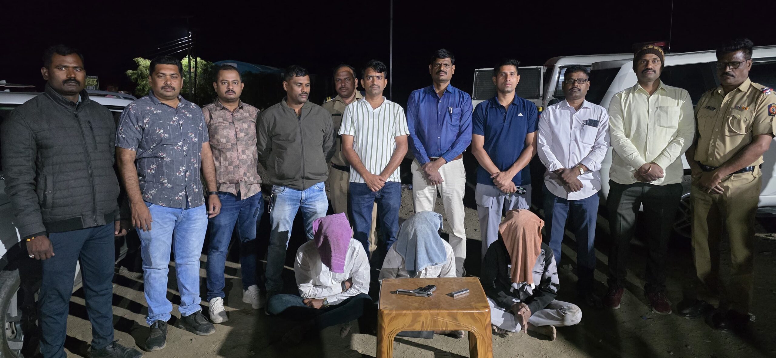 पोलिसांनी मुरूड-अकोला चौक येथे पहाटे सुमारे 04.30 वा. सापळा रचून छापा टाकला. पोलिसांची चाहूल लागताच तेथे उभे असलेले तीन इसम गोंधळलेल्या अवस्थेत दिसले. पोलिसांनी पाठलाग करत तत्परतेने त्यांना ताब्यात घेत चौकशी केली.चौकशीदरम्यान त्यांनी आपली नावे पुढीलप्रमाणे सांगितली 1)अजय गौतम लोमटे (वय 20 वर्षे, रा. फुलेनगर, परळी जि. बीड)2)नयन सुधाकर वाडे (वय 26 वर्षे, रा. गंगासागर नगर, परळी वैजनाथ, जि. बीड)3)सोमेश्वर सुभाष मिसाळ (वय 20 वर्षे, रा. फुलेनगर, परळी जि. बीड)