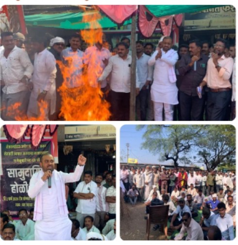 शासनाने 11 फेब्रुवारी रोजी निर्गमित केलेल्या जमीन अधिग्रहणासंदर्भातील शासन निर्णयाचा (जीआर) निषेध म्हणून भेंडाळा येथे शेतकऱ्यांनी सामुदायिक होळी दहन करून संताप व्यक्त केला. यावेळी उपस्थितांना मार्गदर्शन करताना जिल्हा काँग्रेस कमिटी अध्यक्ष महेंद्र ब्राह्मणवाडे यांनी शासनावर गंभीर आरोप करत ते म्हणाले, “शेतकऱ्यांच्या सुपीक शेतजमिनी भडकावून, कवडीमोल दराने बळकावून शेतकऱ्यांना भूमिहीन करण्याचे काम शासन जाणीवपूर्वक करू पाहत आहे. हा विकास नसून शेतकऱ्यांच्या संसाराचा आणि भविष्याचा संपूर्ण नाश आहे. पुढे बोलताना त्यांनी सांगितले की, शेतकऱ्यांची संमती न घेता, स्थानिक ग्रामसभांचा विश्वासात न घेता आणि पर्यावरणीय परिणामांचा विचार न करता जमीन अधिग्रहण करणे हे लोकशाही मूल्यांच्या विरोधात आहे. “जर शासनाने हा निर्णय तात्काळ मागे घेतला नाही, तर जिल्हाभर तीव्र आंदोलन छेडले जाईल,” असा इशाराही त्यांनी दिला असून येत्या 12 मार्च रोजी जिल्हाधिकारी कार्यालय गडचिरोली येथे हजारो शेतकऱ्यांसह धरणे व मुंडन आंदोलन करण्यात येईल असेही त्यांनी सांगितले.