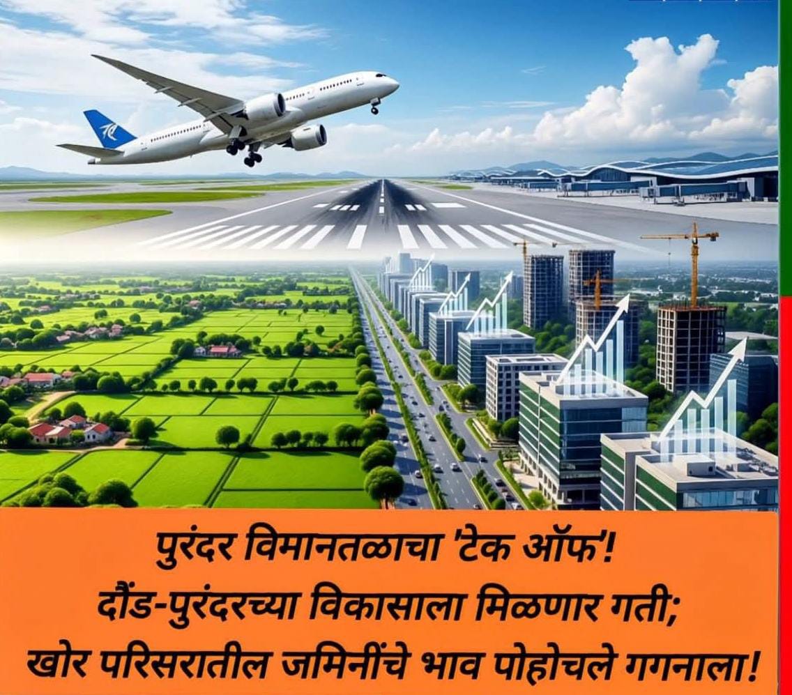 दौंड -पुरंदर तालुक्यात साकारत असलेल्या छत्रपती संभाजी महाराज आंतरराष्ट्रीय विमानतळ (Purandar International Airport) प्रकल्पामुळे संपूर्ण दौंड आणि पुरंदर तालुक्याच्या विकासाला अभूतपूर्व गती मिळणार आहे.