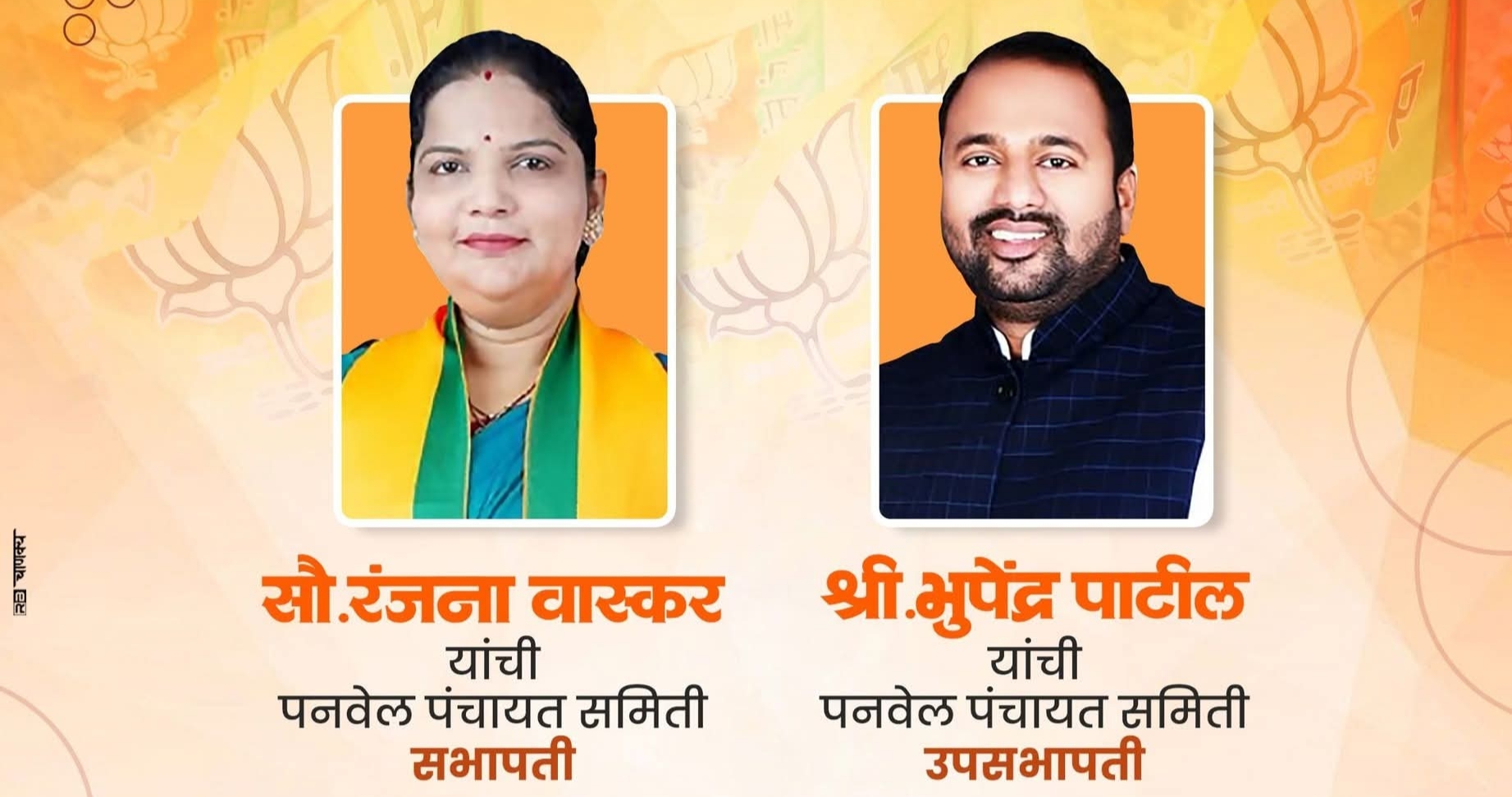 सभापती पदी सौ.रंजना वास्कर आणि उपसभापती पदी श्री भूपेंद्र पाटील यांनी लोकनेते श्री रामशेठ ठाकूर यांच्या उपस्थितीत पनवेल पंचायत समिती कार्यालयात पदभार स्वीकारला.