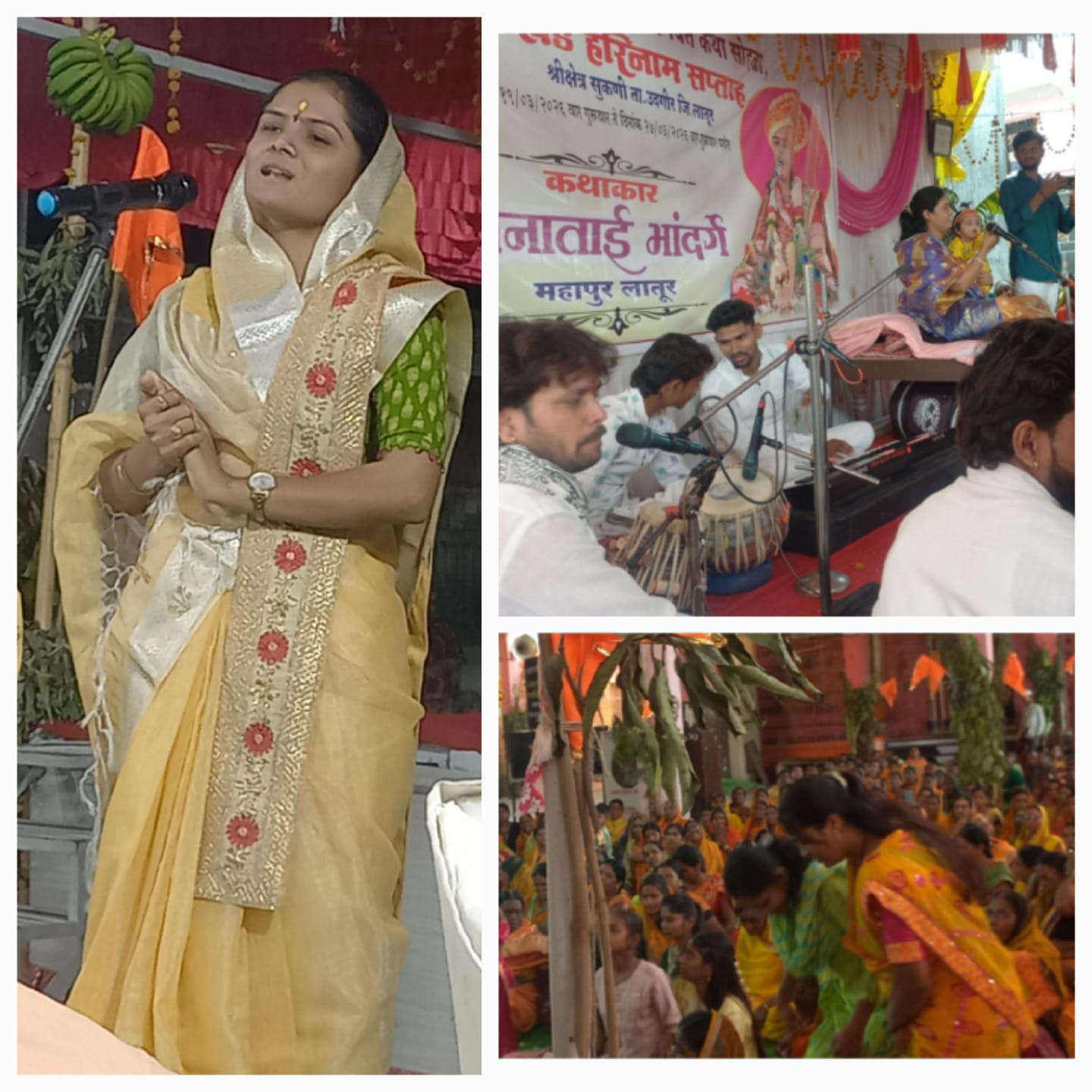 याशिवाय भागवत कथा ह.भ.प. जनाताई भांदर्गे यांच्याकडून सुरू असून, काल कृष्ण जन्मोत्सव सोहळा उत्साहात पार पडला. कीर्तन सेवेने संपूर्ण परिसर भक्तिमय झाला असून मृदंगवादक प्रेमनाथ बालाजी मुळे व गायनाचार्य अवधूत अरुण सुकणे यांनी उपस्थितांना मंत्रमुग्ध केले.