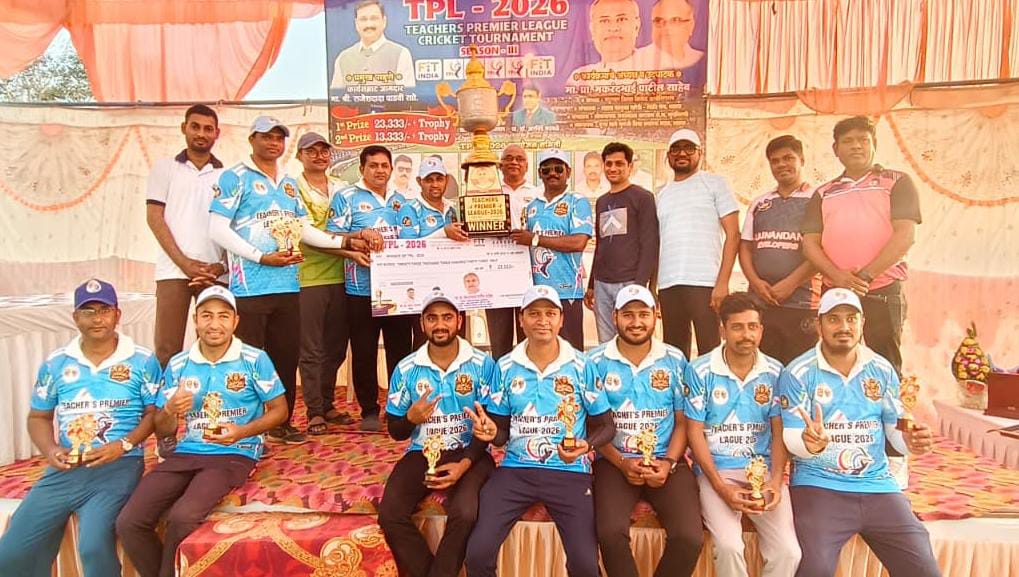 शहादा (प्रतिनिधी): पूज्य साने गुरुजी विद्या प्रसारक मंडळाचे क्रीडांगण येथे तीन दिवस चाललेल्या टीचर्स प्रीमियर लीग (TPL) २०२६ – सिझन ३ स्पर्धेच्या अंतिम सामन्यात बिस्की रॉयल्स, नंदुरबार संघाने अप्सरा फायटर, शिरपूर संघावर मात करत सलग दुसऱ्या वर्षी विजेतेपद पटकावले.