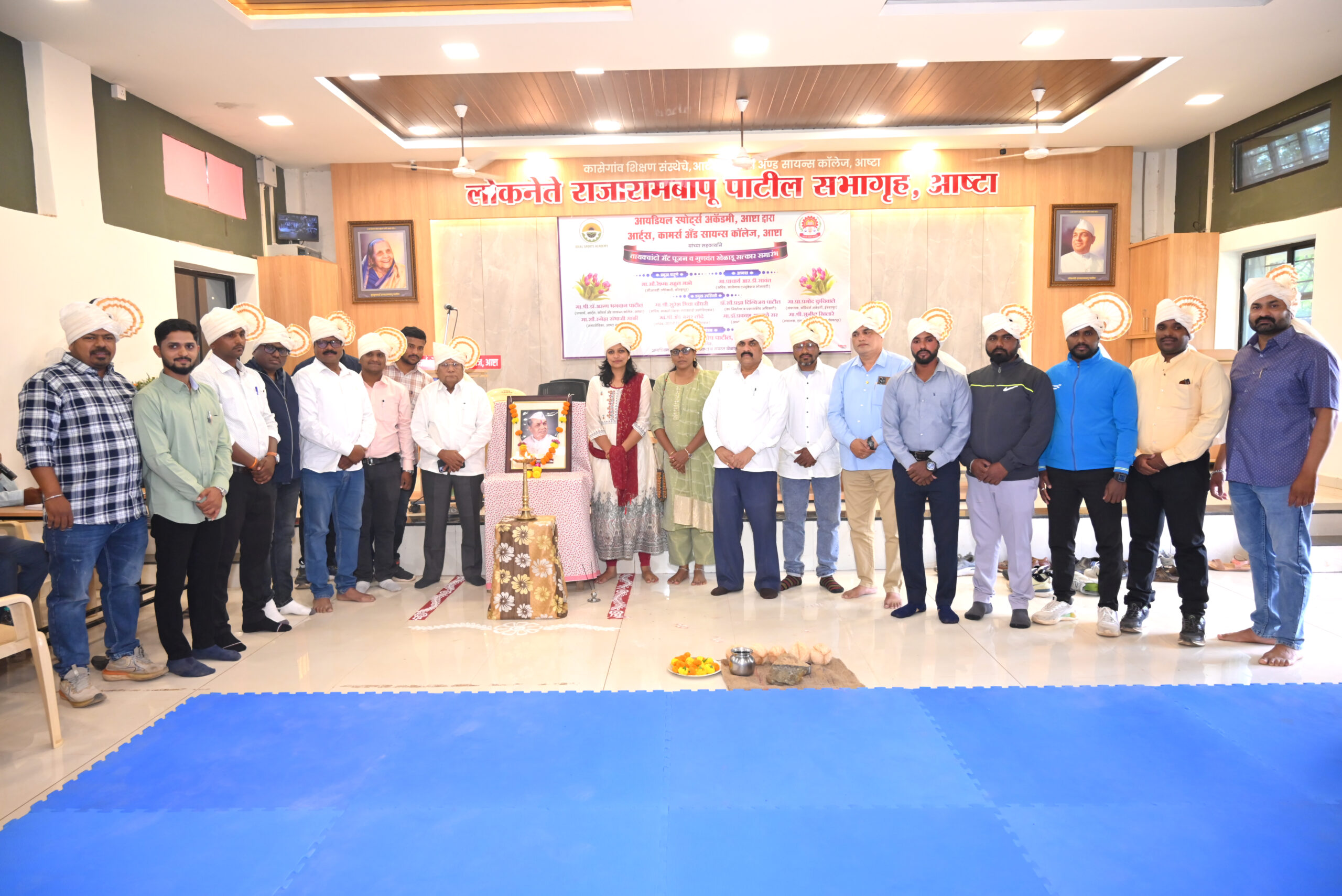आष्टा (प्रतिनिधी) : आष्टा येथील आर्ट्स, कॉमर्स व सायन्स महाविद्यालयाच्या लोकनेते राजाराम बापू पाटील सभागृहात आयडियल स्पोर्ट्स अकॅडमीच्या वतीने गुणवंतांचा सत्कार व तायक्वांदो मॅट पूजन कार्यक्रम उत्साहात पार पडला. हा कार्यक्रम अकॅडमीचे सचिव आशितोष पाटील यांच्या पुढाकाराने आणि महाविद्यालयाच्या सहकार्याने आयोजित करण्यात आला होता.