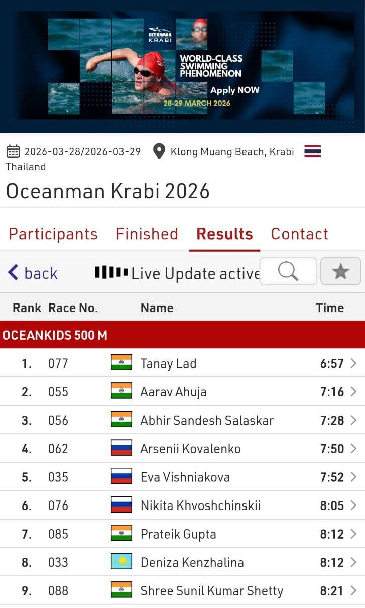 थायलंडमधील क्रॅबी येथे पार पडलेल्या ‘ओशनमॅन क्रॅबी २०२६’ या जागतिक दर्जाच्या खुल्या जलतरण स्पर्धेत पनवेलच्या न्यू होरायझन्स पब्लिक स्कूलचा १३ वर्षीय जलतरणपटू तनय तुषार लाड याने उल्लेखनीय कामगिरी करत २ सुवर्ण आणि १ कांस्य अशी एकूण ३ पदके जिंकून भारताचा तिरंगा अभिमानाने फडकावला.