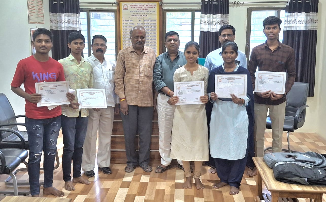 या विद्यार्थ्यांना संस्थेचे संचालक श्री. दिलीपजी हिबारे, महाविद्यालयाचे प्राचार्य डॉ. भास्कर मुंडे, प्राचार्य डॉ. नागनाथ कदम तसेच राज्यशास्त्र विभाग प्रमुख डॉ. पंडित मोरे यांच्या हस्ते बक्षीस व प्रमाणपत्र वितरण करण्यात आले.