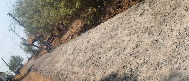 सुमारे २०० मीटर लांबीच्या या रस्त्याचे काम सार्वजनिक बांधकाम विभागामार्फत करण्यात आले आहे. मात्र, बांधकामात मोठ्या प्रमाणात अनियमितता झाल्याचे स्पष्ट दिसून येत आहे. रस्त्यावर मोठमोठे दगड टाकण्यात आले असून योग्य प्रमाणात सिमेंटचा वापर न झाल्याने रस्ता उखडलेला व खडबडीत झाला आहे.