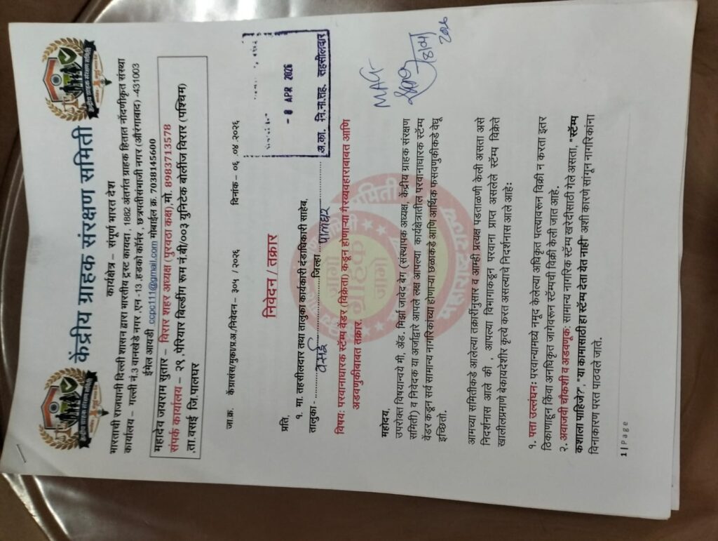 तसेच नागरिकांनी जागरूक राहून स्टॅम्प पेपर खरेदी करताना अतिरिक्त पैसे देऊ नयेत आणि फसवणूक झाल्यास संबंधित विभागाकडे तक्रार नोंदवावी, असे आवाहन विरार शहर पुरवठा कक्षाच्या वतीने करण्यात आले आहे.