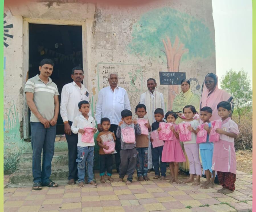 या कार्यक्रमाचे आयोजन शालेय व्यवस्थापन समितीचे अध्यक्ष श्री. सचिन आनंदराव शेळके यांच्या हस्ते करण्यात आले. यावेळी इयत्ता १ ली ते ५ वी मधील ५५ विद्यार्थ्यांना तसेच अंगणवाडीतील २० चिमुकल्यांना शालेय गणवेश, वह्या, पेन आणि बिस्किटांचे वाटप करण्यात आले.