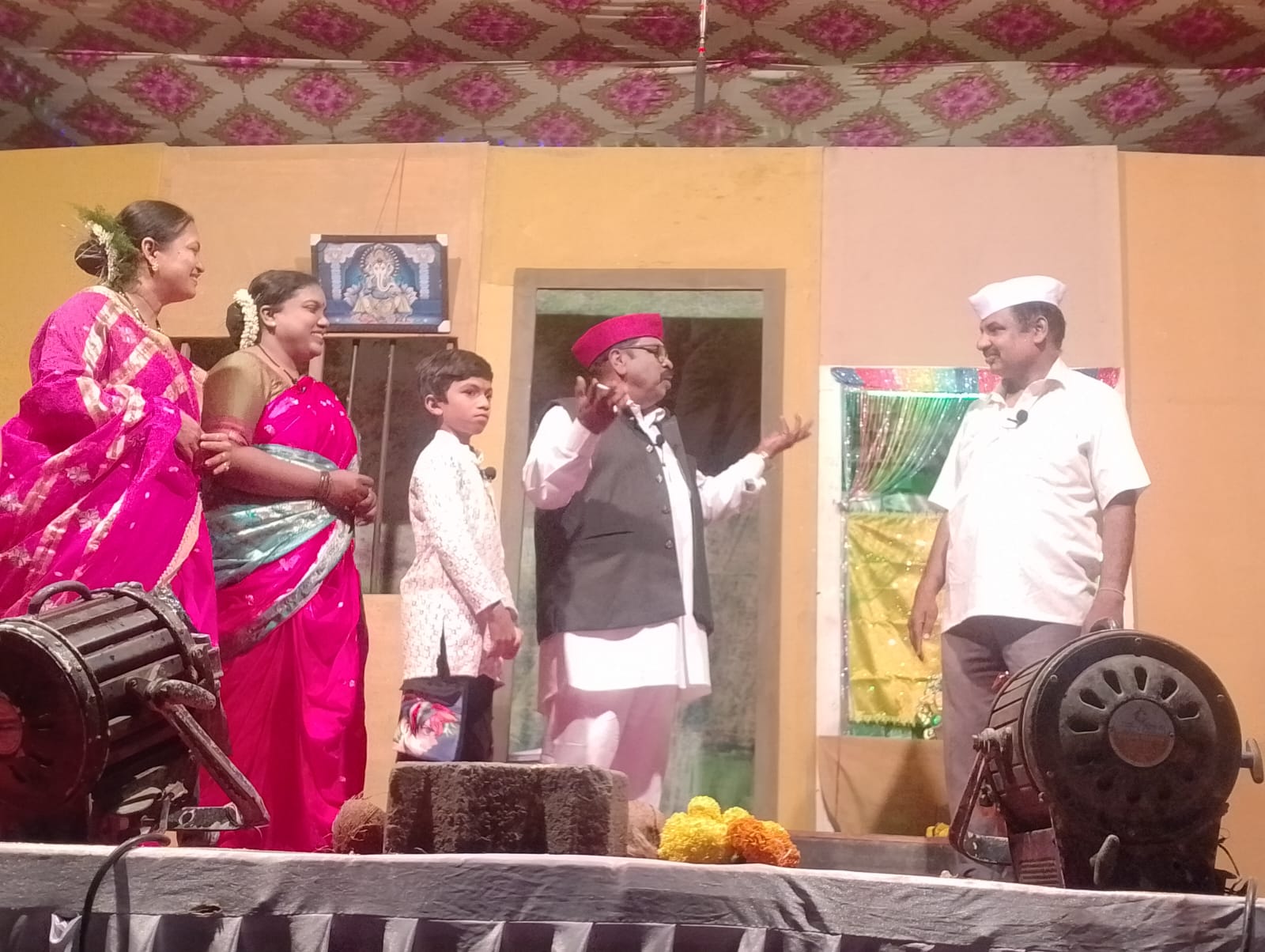त्यांच्या शुभहस्ते छत्रपती शिवाजी महाराज यांच्या प्रतिमेस पुष्पहार अर्पण अर्पण करून, पुरोगामी पत्रकार संघ रायगड जिल्हा संपर्क प्रमुख पत्रकार श्री कैलासराजे निर्मला कमलाकर घरत यांच्या शुभहस्ते दिपप्रज्वलन करून जे.एन.पी.टी विश्वस्त रवींद्र पाटील साहेब यांच्या हस्ते श्रीफळ वाढवून या नाटकाचा शुभारंभ करण्यात आला. यावेळी रंगमंचावर सन्माननीय रायगड जिल्हा काँग्रेस सरचिटणीस मुरलीधरशेठ ठाकूर, जे.डी.शेठ बेलपाडा, धर्मुबाई पाटील माजी सरपंच जासई, बळीरामशेठ घरत(घरत फार्म स्टे),मिलिंद ठाकूर जासई, रमाकांत गावंड सर पिरकोन, धर्मादास घरत, मनीष नाईक, रमाकांत म्हात्रे रायगड जिल्हा भाजप कार्यकारिणी, पुरोगामी पत्रकार संघ उरण तालुका अध्यक्ष प्रवीण नाईक पेण तालुका सचिव रमाकांत घरत आदी मान्यवर उपस्थित होते. या नाटकाच्या कार्यक्रमाचे उत्तम निवेदक म्हणून जीवन डाकी-बोरखार यांचे मोलाचे सहकार्य लाभले.