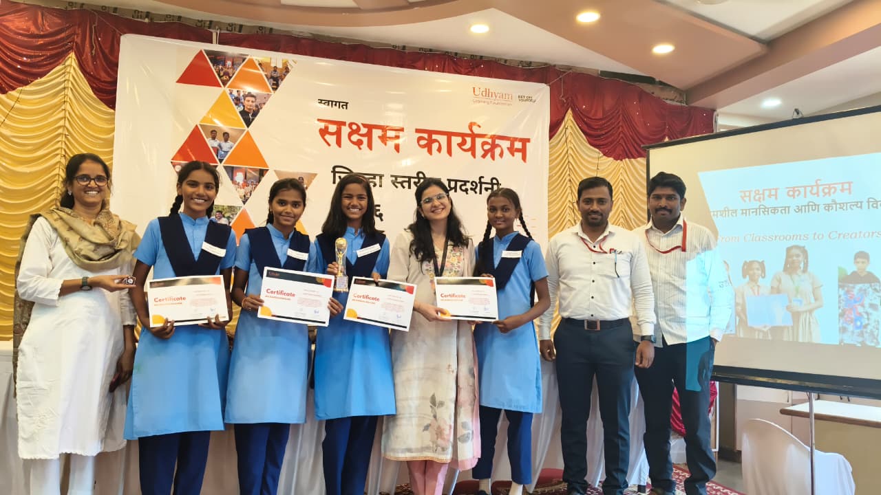 या सोहळ्यास मा. श्री. दत्तात्रय थिटे (SCERT), डॉ. प्रभाकर क्षीरसागर (DIET, पुणे), श्री. वाळके (SCERT), सौ. कुमावत (माध्यमिक शिक्षण विभाग) व श्री. सातपुते यांच्यासह सक्षम फाउंडेशनचे समन्वयक श्री. अक्षय राऊत, वर्षा डांगे व अवनी मॅडम उपस्थित होते.