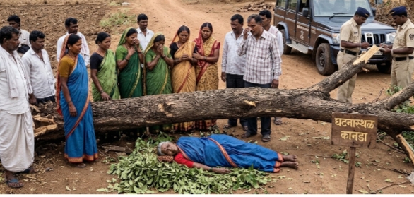 मिळालेल्या माहितीनुसार, मृत महिलेचे नाव मंजुळाबाई चीडे असे असून त्या मागील आठ वर्षांपासून आपल्या जावयाकडे वास्तव्यास होत्या. घटनेच्या दिवशी त्या काही कारणास्तव घराबाहेर पडल्या असताना गावालगतच्या पांदण रस्त्यावरून जात होत्या. त्याचवेळी जोरदार वाऱ्यामुळे रस्त्याच्या कडेला उभे असलेले शिरसाचे झाड अचानक कोसळून थेट त्यांच्या अंगावर पडले.
