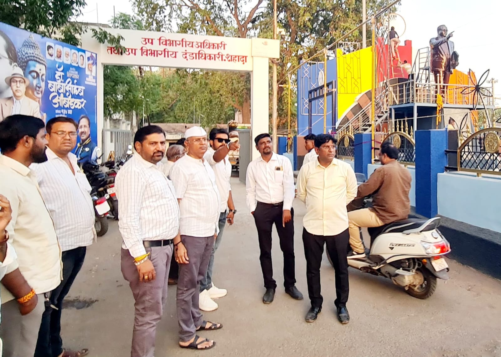भारतरत्न डॉ. बाबासाहेब आंबेडकर यांच्या जयंती उत्सवाच्या पार्श्वभूमीवर शहादा शहरात जय्यत तयारी सुरू आहे. या उत्सवानिमित्त आयोजित महोत्सवाच्या पूर्वतयारीची आज विविध राजकीय पक्षांच्या पदाधिकाऱ्यांनी आणि सामाजिक कार्यकर्त्यांनी प्रत्यक्ष पाहणी केली. विशेष म्हणजे शांतता समितीच्या बैठकीत उपस्थित केलेल्या मागणीची तातडीने दखल घेत पुतळा परिसरात नवीन हॅलोजन दिवे बसवण्यात आले आहेत.
