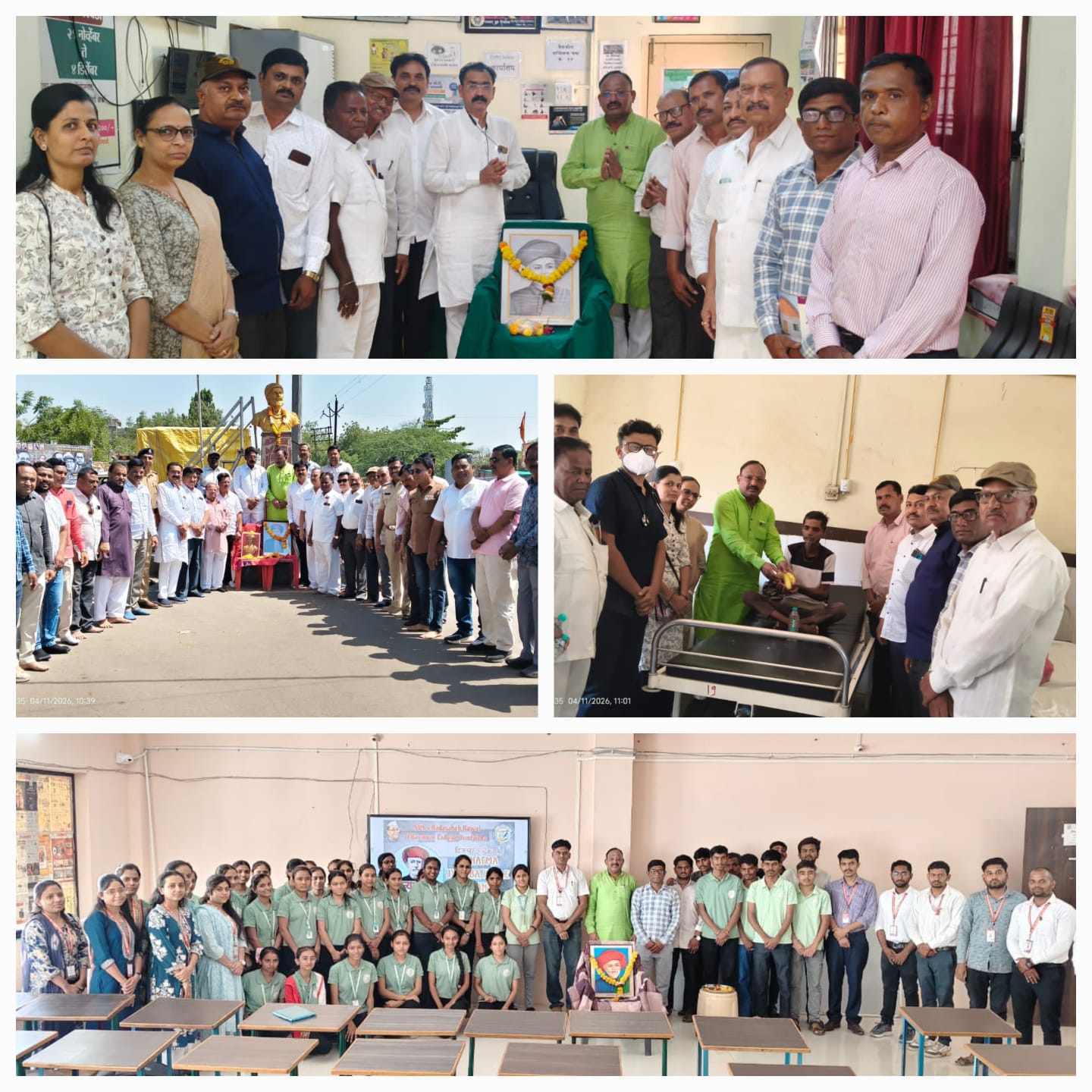 ज्योतीबांनी आयुष्यभर सामाजिक समतेचा लढा दिला त्यांनीं शिक्षणाच्या प्रसारासोबत स्री शिक्षण शेतकऱ्यांना मार्गदर्शन अस्पृश्यतेच्याविरुद्ध आवाज उठविला बुद्धीस्ट सोशल ग्रुपचे अध्यक्ष दिपक सोनवणे रोटरी सिनियर्सचे अध्यक्ष प्रविण महाजन भाजपा शहराध्यक्ष जितेंद्र गिरासे माजी नगराध्यक्ष डॉ रविंद्र देशमुख विक्रम पाटील नगरसेवक निखिल जाधव बांधकाम सभापती मुकेश देवरे नबुभाई पिंजारी विजय मराठे हितेंद्र महाले कृष्णा नगराळे नरेंद्र गिरासे रामभाऊ माणीक भुपेंद्र धनगर अक्षय सोनवणे नरेंद्र कोळी अनिल सिसोदिया संतोष रामराजे डि एम पानपाटील विजयकूमार पेंढारकर बी डी साळवे एन व्ही पेंढारकर चेतन राजपुत संजय गिरासे राहुल माळी कालु नगराळे नरेंद्र ठाकुर रविंद्र सैंदाणे रवि महाले मनोज महाजन पोलीस निरीक्षक दिनेश सोनवणे पोलिस उपनिरीक्षक शिंपी इ मान्यवर उपस्थित होते.