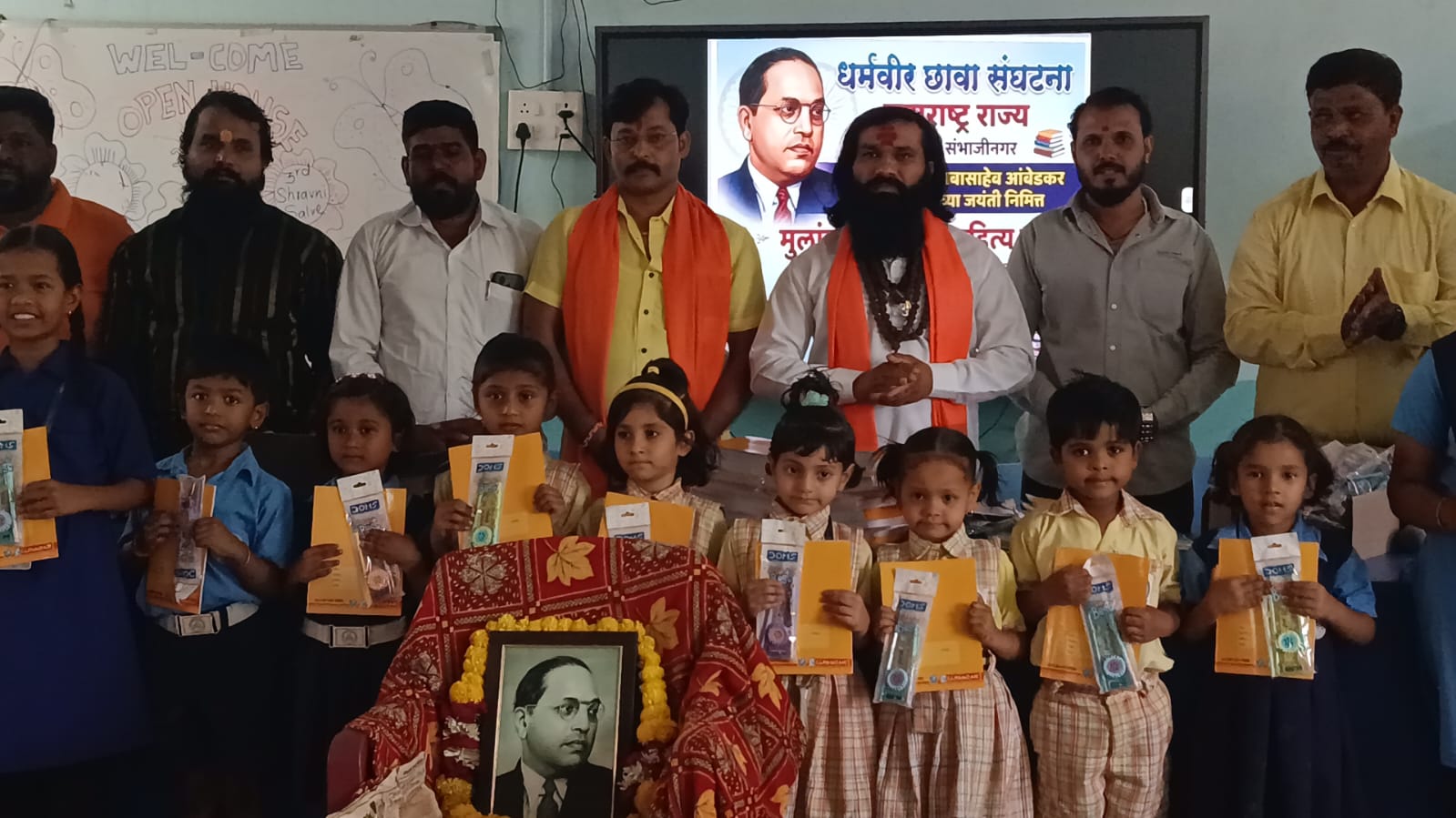 छत्रपती संभाजीनगर येथील महानगरपालिकेच्या प्राथमिक शाळेत भारतरत्न डॉ. बाबासाहेब आंबेडकर यांच्या जयंतीनिमित्त धर्मवीर छावा संघटनेच्या वतीने गरजू व होतकरू विद्यार्थ्यांना शालेय साहित्य वाटपाचा उपक्रम राबविण्यात आला.