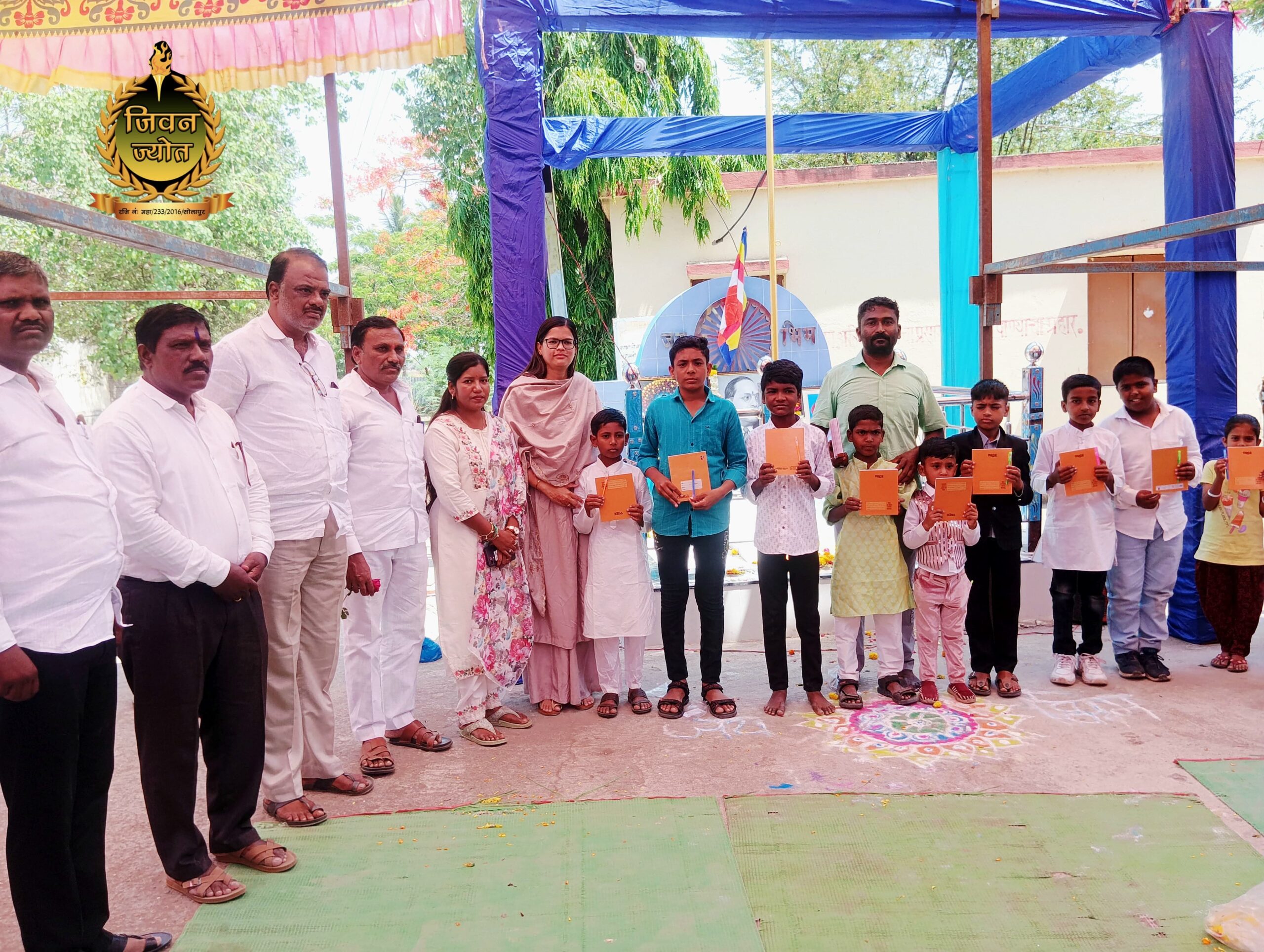 या प्रसंगी जीवन ज्योत फाउंडेशनच्या वतीने लहान मुलांना वह्या व पेनचे वाटप करण्यात आले. तसेच “शिका, संघटित व्हा आणि संघर्ष करा” या डॉ. बाबासाहेब आंबेडकर यांच्या विचारांचा संदेश देत विद्यार्थ्यांना शिक्षणाचे महत्त्व पटवून देण्यात आले.
