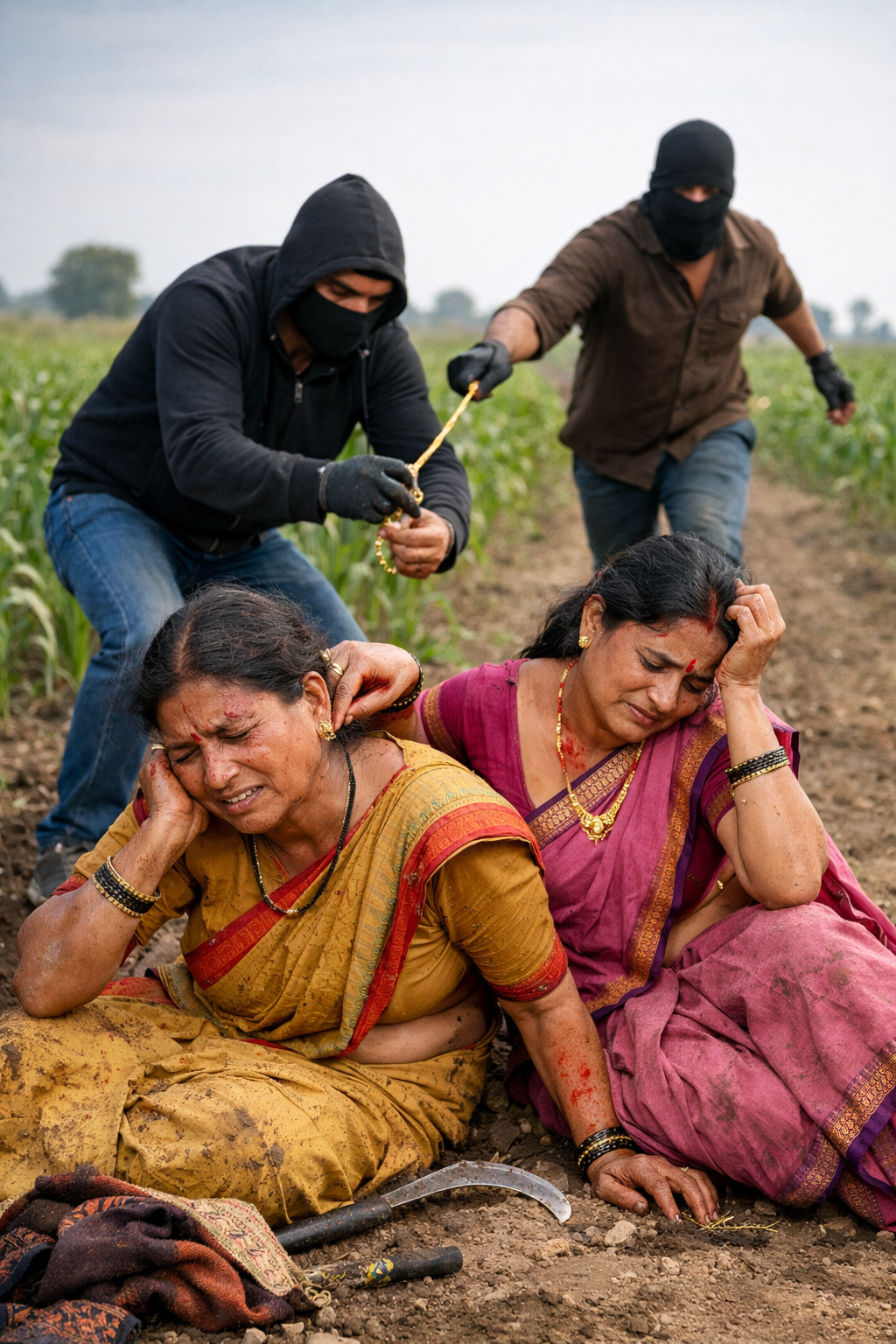 मिळालेल्या माहितीनुसार, ताराबाई मुरलीधर कोकाटे व त्यांची सून या दोघी शेतात काम करत असताना दोन अनोळखी व्यक्तींनी अचानक त्यांच्यावर हल्ला केला. आरोपींनी महिलांना मारहाण करून त्यांच्या कानातील व गळ्यातील दागिने हिसकावून घेतले आणि घटनास्थळावरून फरार झाले.