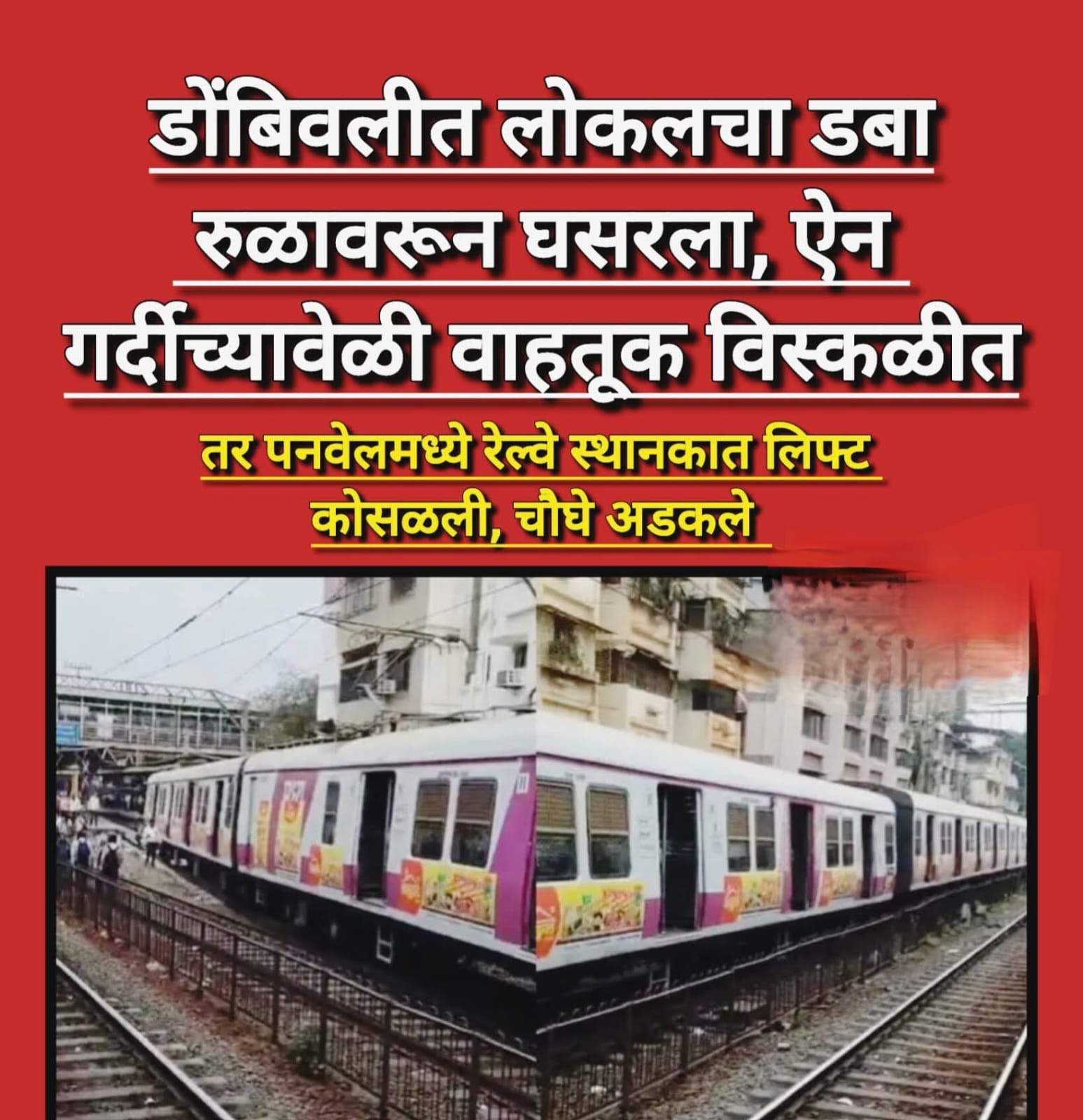 मिळालेल्या माहितीनुसार, लोकल गाडी कळवा कारशेड येथून सुटल्यानंतर डोंबिवली स्थानकात प्रवेश करत असताना अचानक एक डबा रुळावरून खाली घसरला. या घटनेमुळे काही वेळेसाठी वाहतूक पूर्णपणे थांबवण्यात आली होती.