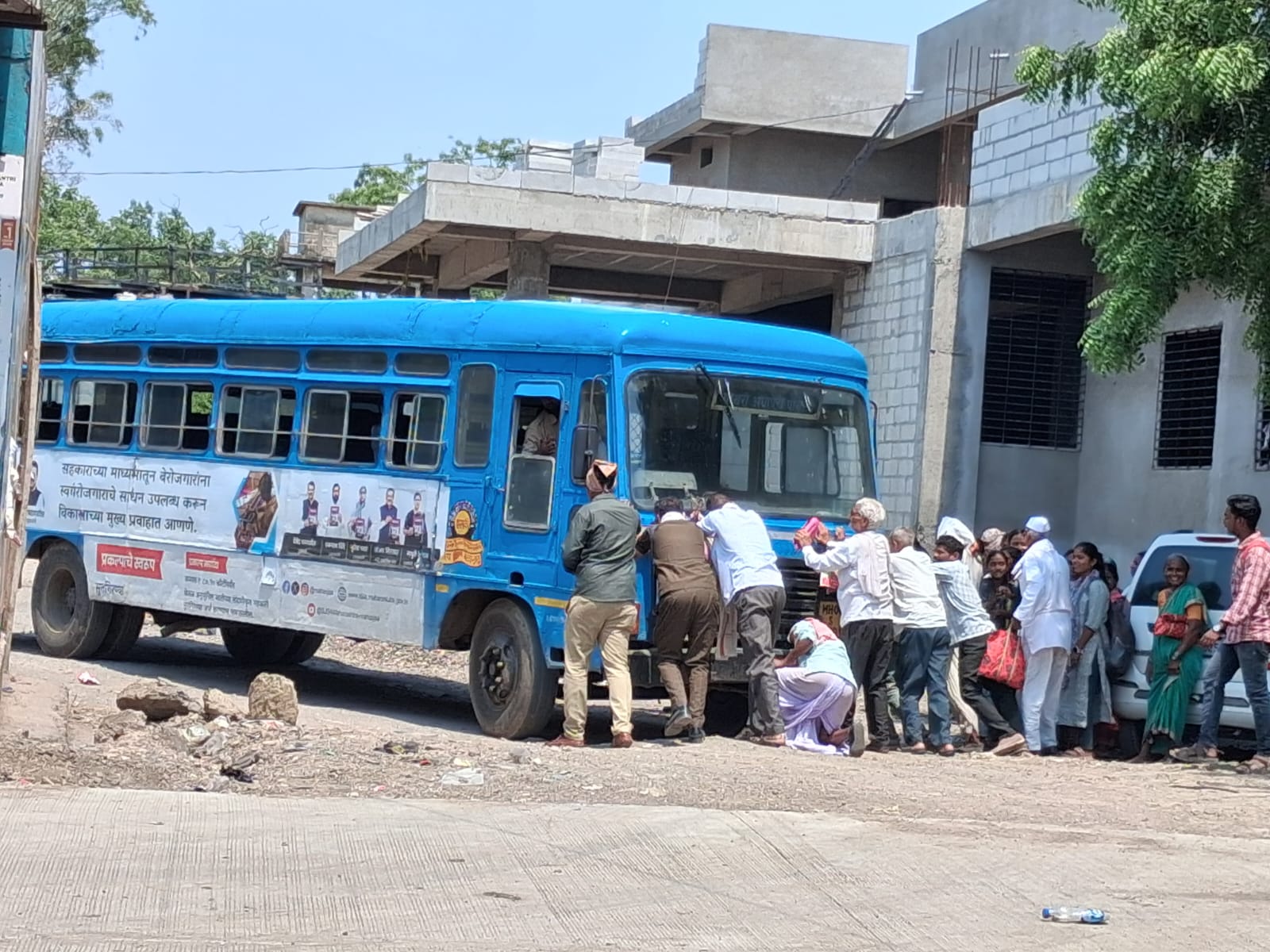 🔴 प्रवाशांकडून बस ढकलण्याचा प्रकार