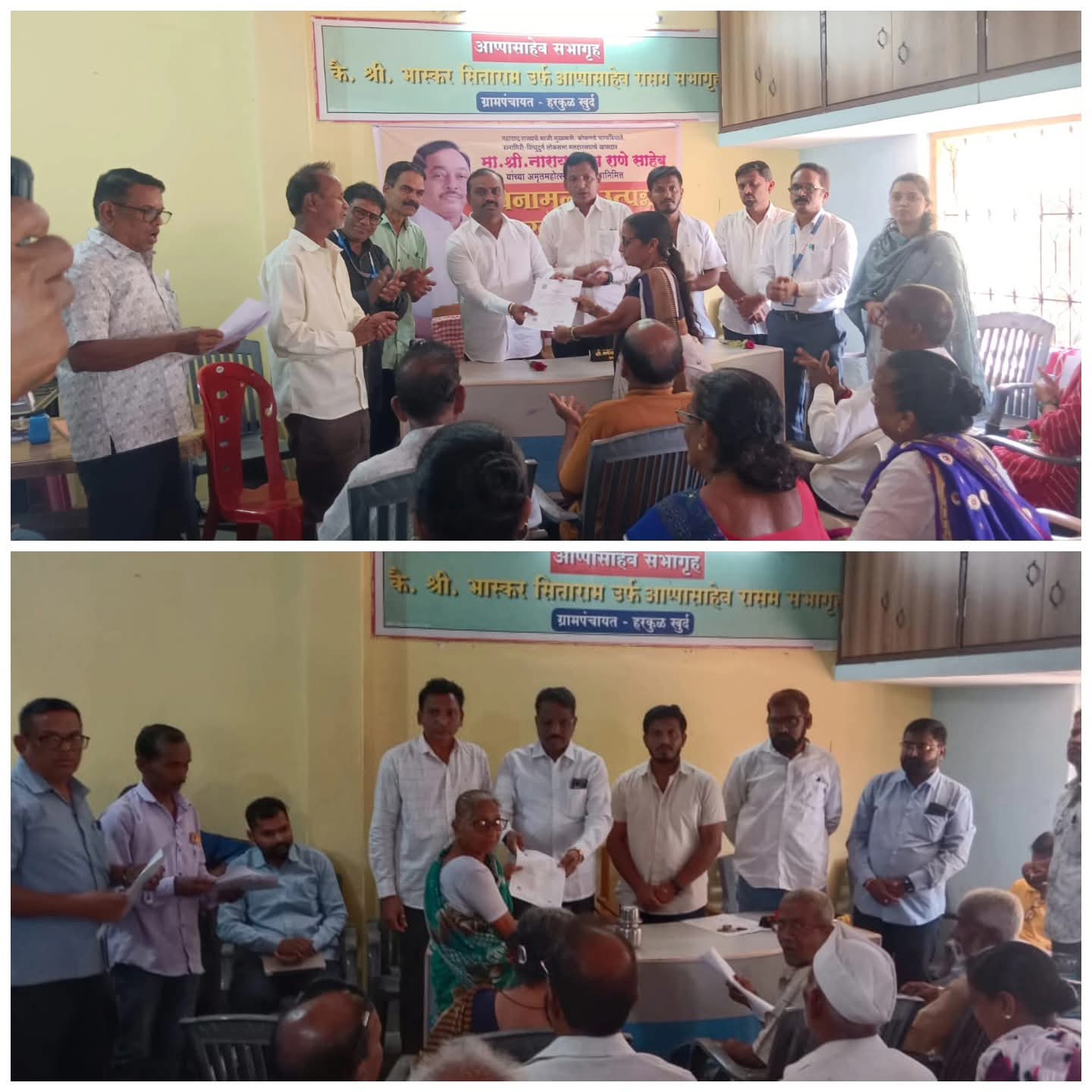 कणकवली (प्रतिनिधी) : माजी केंद्रीय राज्यमंत्री तथा विद्यमान खासदार नारायण राणे यांच्या अमृतमहोत्सवी वाढदिवसानिमित्त हरकुळखुर्द येथे संजय गांधी योजना लाभार्थी व विद्यार्थ्यांसाठी मोफत उत्पन्न दाखला शिबिराचे आयोजन करण्यात आले. जि.प. सदस्य मनोज रावराणे यांच्या सौजन्याने आणि भारतीय जनता पार्टी हरकुळ खुर्द, ग्रामपंचायत हरकुळखुर्द व महसूल प्रशासन कणकवली यांच्या संयुक्त सहकार्याने हा उपक्रम राबविण्यात आला.