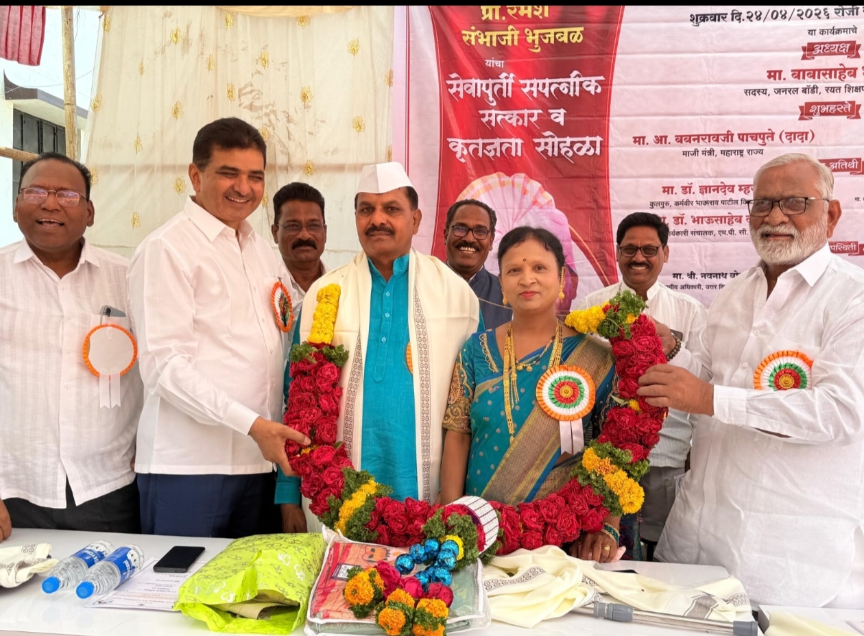 याप्रसंगी प्रा. रमेश भुजबळ व सौ. सीमा भुजबळ यांचा तसेच त्यांच्या आई-वडिलांचा सत्कार करण्यात आला. सत्कारमूर्ती प्रा. भुजबळ यांनी आपल्या मनोगतातून जीवनप्रवास व कार्यातील अनुभव मांडले.