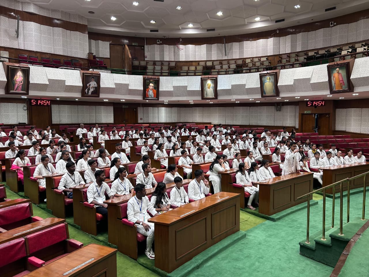 विधान भवन भेटीदरम्यान विधानसभा सहसचिव नागनाथ थेटे यांनी विद्यार्थ्यांशी संवाद साधत विधानसभेची रचना, कामकाज, प्रश्नोत्तर प्रक्रिया तसेच लोकशाहीतील महत्त्वाच्या बाबींची सविस्तर माहिती दिली. या अनुभवामुळे विद्यार्थ्यांच्या ज्ञानात भर पडल्याचे सांगण्यात आले.